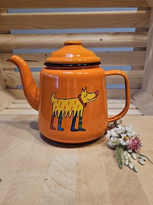 Čajnik emajliran Smaltum oranžen s kužkom 1,5 l