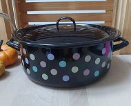 Komplet emajlirane črne posode s pastelnimi pikami 7-delni